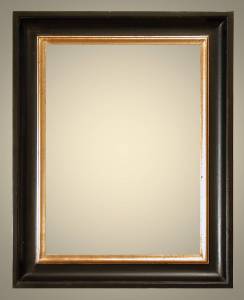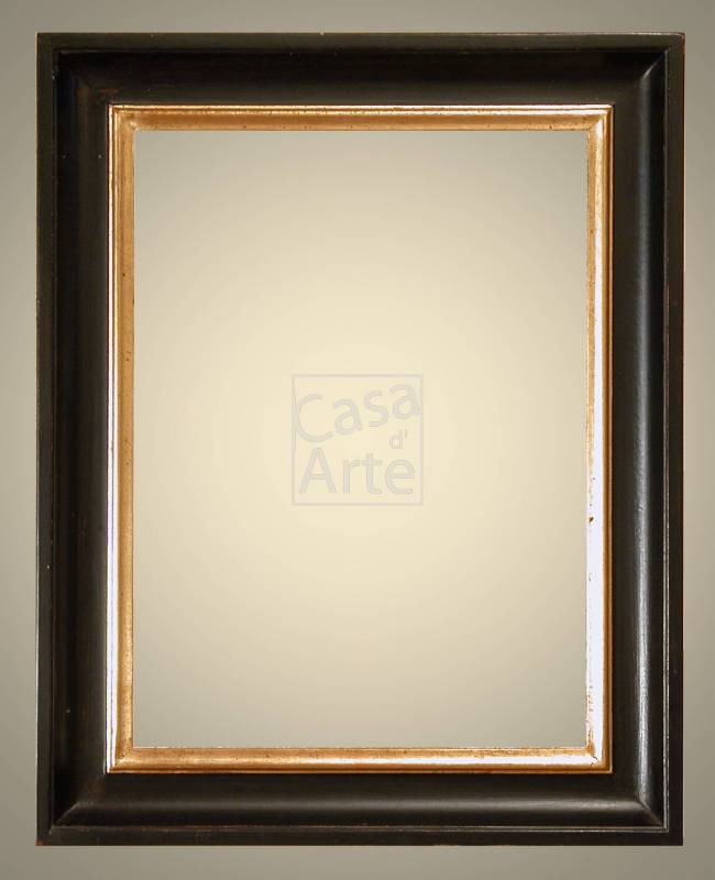 Cornice in legno di tiglio massello laccata a mano con bordo interno in argento fino a guazzo lucidato con pietre d’agata e ossidato. Rifinita con patine e cere naturali.